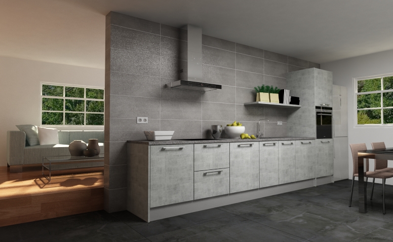 La cocina en kit que os enseñamos esta semana utiliza el modelo de puerta Tahon Laminado con un acabado Montana (SI4C-300) y un número de
