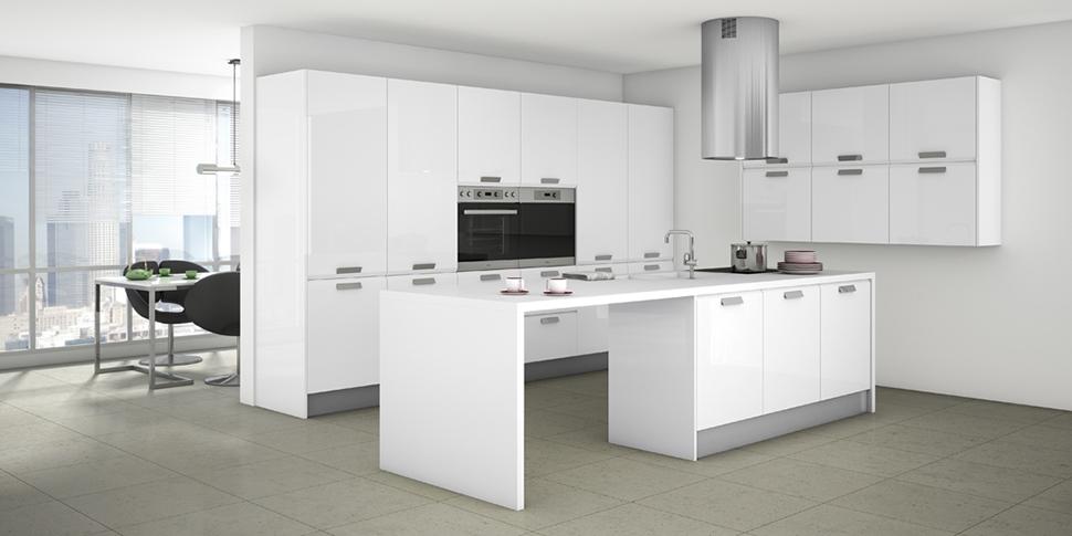 Hoy os enseñamos otro de nuestros modelos, concretamente la cocina en forma de U con puerta Mónaco brillo de color blanco (SIPO-048). Las cocinas en